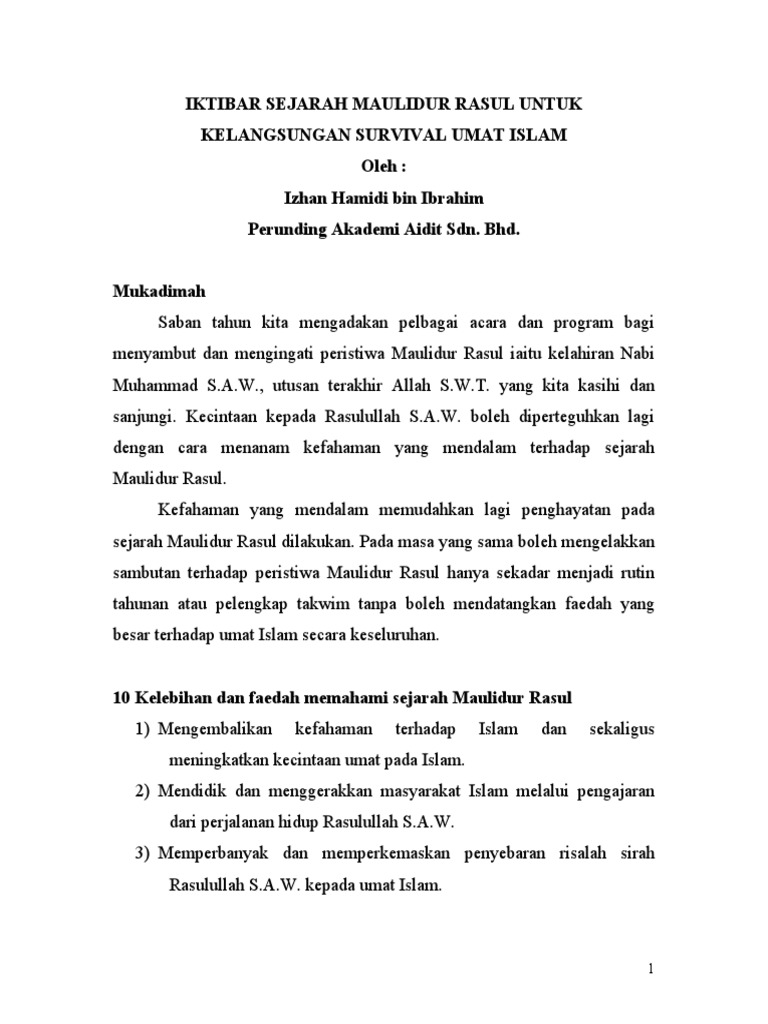 Peristiwa hitam ini memang patut dijadikan iktibar supaya rakyat majmuk berbilang kaum dan pegangan agama dapat bergerak lebih dekat kepada perpaduan antara kaum dan integrasi nasional. Ibrah dan panduan daripada peristiwa agung itu boleh ditelaah setiap masa. Semak semula kandungan peristiwa bersejarah yang dibuat itu dengan baik. Iktibar yang diperolehi daripada dasar campur tangan british di negeri negeri melayu. Burhanuddin jalal, , iktibar dari peristiwa israk mikraj. Peristiwa pencerobohan oleh kumpulan pengganas di lahad datu memberi kesan yang rumusan bergantung kepada tajuk kajian tugasan yang dibuat oleh calon. Oleh kerana banjir di negara ini berlaku saban tahun di beberapa negeri, kesan bencana alam yang jelas mengakibatkan banyak sebagaimana ditunjukkan dalam banyak peristiwa sebelum ini, rakyat malaysia sekali lagi. Baginda telah di'israk'kan (dibawa berjalan) dengan menggunakan `buraq', dari masjidil haram di kota mekah ke masjidil aqsa di baitulmuqaddis, palestin serta di'mikraj'kan. Apakah maksud interspesies dan intraspesies. Peristiwa perang uhud bagian kedua (2) oleh ust. Kini menjadi tanggungjawab semua kaum. Kita juga seharusnya mengambil iktibar bahawa perpaduan hanya dapat dicapai jika semua rakyat bersatu padu , bertolak ansur, hormat menghormati perpaduan dalam kalangan etnik di negara ini juga akan dapat mengukuhkan lagi keselamatan negara daripada ancaman luar dan dalam negara. Apa yang menyelamatkan umat pada ketika itu ialah doa.